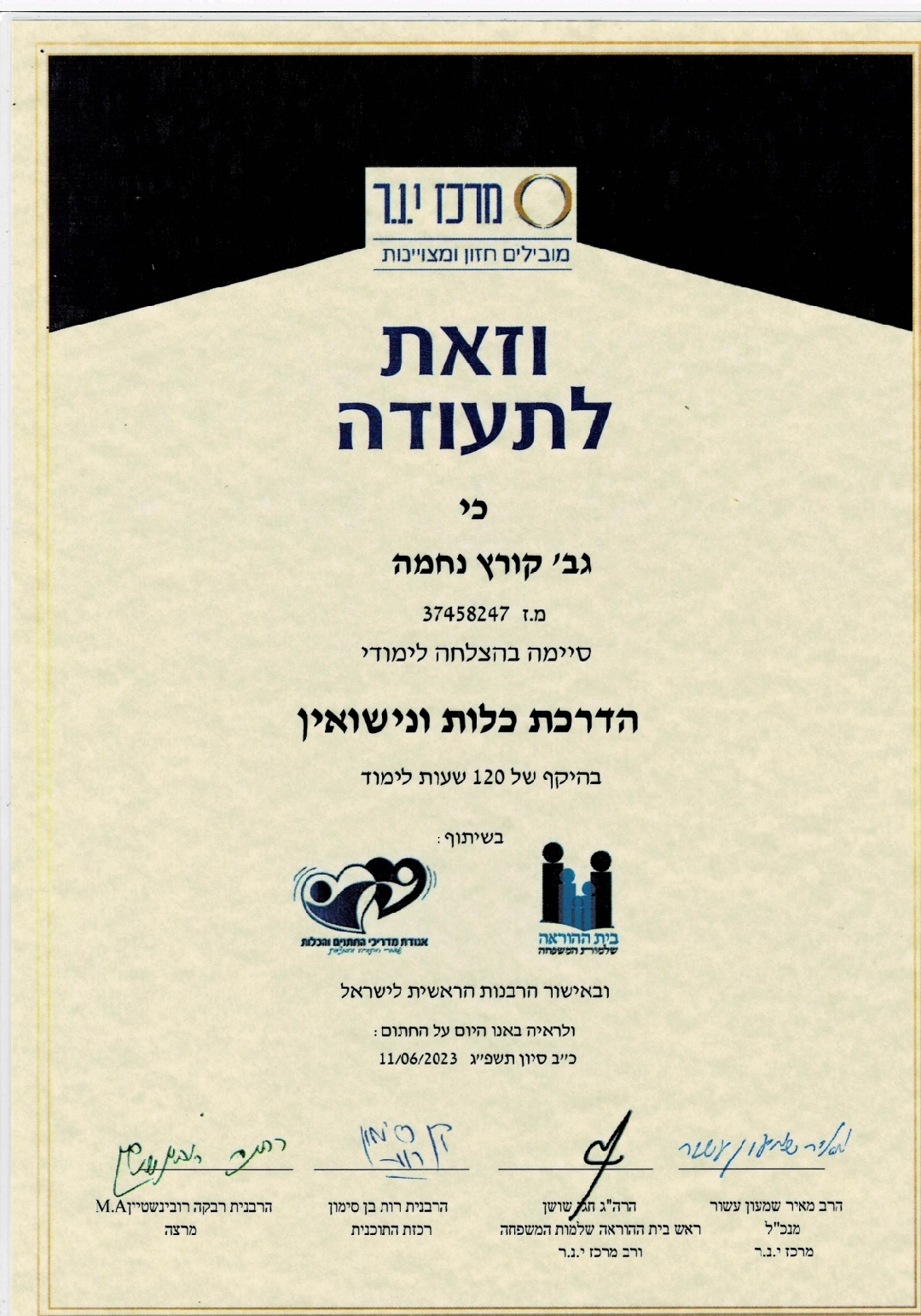במשך השנים ליוויתי וייעצתי לכלות ולנשים צעירות ועכשיו לאחר הכשרה וקבלת כלים מקצועיים, אני מתרגשת ושמחה מתוך שליחות, עם כל כלה לצעוד יחד לדרך החדשה וללמוד יחד על זוגיות ואהבה מתוך קדושה וטהרה.